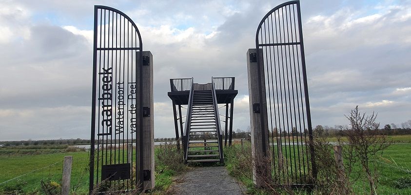Wasserspeicher Blauwe Poort in Beek en Donk. Auf dem Land zwischen Beek en Donk und Boerdonk liegt der Blauwe Poort, ein innovatives Wasserspeichergebiet. Es sieht aus wie ein Gemälde. Mitten in der Grünanlage an der N279, gegenüber dem Gewerbegebiet Bemmer, wurde vor kurzem ein richtiges Tor errichtet, das zur Treppe des neu installierten Aussichtsturms führt, von dem aus die Besucher das gesamte Areal überblicken können. Der Wasserspeicher ist so gestaltet, dass sich blühende Wiesen gut entwickeln und sich Wiesenvögel und der "Große Schlammläufer" (eine geschützte Fischart) wohlfühlen. Vom Blauwe Poort aus können Sie die Wiesenvögel beobachten.