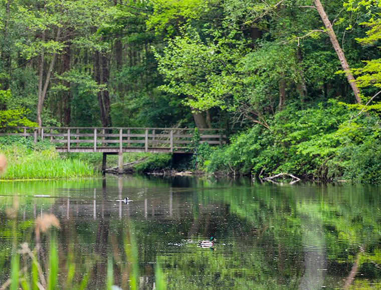 Wasserspiele, besondere Bäume, Brücken und Bänke finden sich überall in der Grünen Länge. Überall gibt es Schilder, die Sie auf die Natur aufmerksam machen. Die Tour ist - in trockenen Zeiten - für Rollstühle zugänglich. Bei Nässe ist es möglich, einen Buggy oder Kinderwagen mitzunehmen. Durch die Grüne Lunge können Sie auch Spaß beim Beobachten von Vögeln haben. Hier ist ein Vogellehrpfad angelegt worden. Neben den Vögeln können Sie auch die schönen Bäume und Pflanzen genießen. Und natürlich von der faszinierenden Insektenwelt.