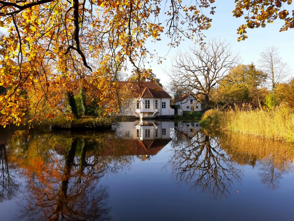 Das Schloss liegt an der Aa. Die Wege auf dem 61 ha großen Gelände sind frei zugänglich, nur die unmittelbare Umgebung des Schlosses ist es nicht. Das Anwesen besteht zu einem Teil aus Wald (hauptsächlich Pappeln) und einigen Bauernhöfen. Den Kern der Anlage bildet die großzügig umschlossene fünfeckige Schlossinsel, die über das Torhaus zugänglich ist; zwischen Tor und Hauptgebäude ist eine kurze Allee mit ca. 200 Jahre alten Linden bepflanzt, die in einem Vorplatz endet. Vom Gemertseweg aus gab es einen zweiten Zugangsweg, der parallel zur unregelmäßig fließenden Aa verlief; Teile dieses Weges sind erhalten geblieben. Durch die Normalisierung der Aa (1941) sind beide Wege nicht mehr gut miteinander verbunden. Südöstlich der (Haupt-)Zufahrtsstraße liegt ein Rest des ursprünglichen Gemüse- und Obstgartens, an den nur noch eine Reihe von Kopfbirnbäumen parallel zur Zufahrt erinnert (weitere Weide). In unmittelbarer Nähe des Hauses befinden sich einige Solitärbäume (Walnuss, Rotbuche, Sumpfzypresse, Platane). Nördlich des Hauses befindet sich ein Obstgarten mit überwiegend halbstämmigen Birnbäumen.
