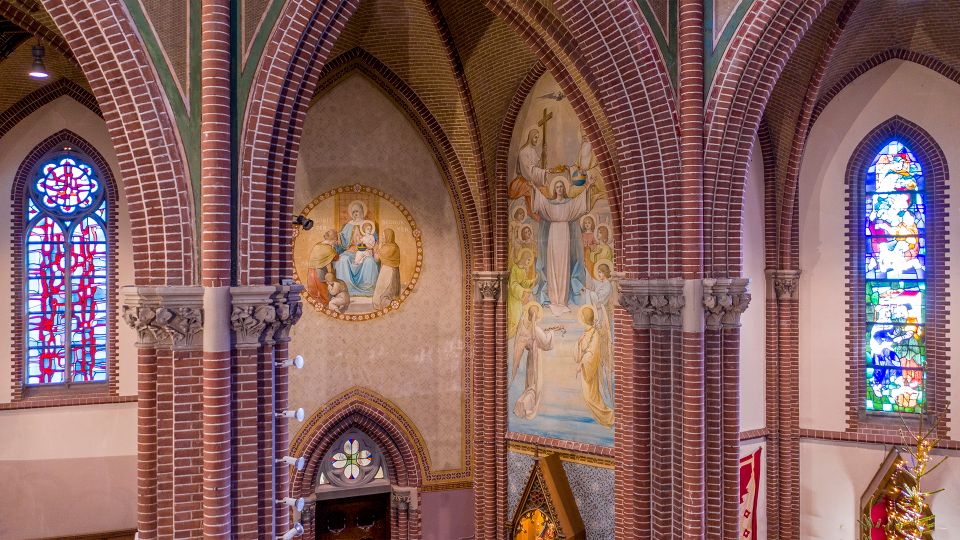 Die Kirche hat einen 75 m hohen Turm, in dem sich ein Glockenspiel mit 57 Glocken befindet, die von der örtlichen Glockengießerei Eijsbouts gegossen wurden. Jeden Mittwoch von 11 bis 12 Uhr wird es von einem Glockenspieler gespielt. Das Eingangsportal aus Sandstein stellt unter anderem die Geschichte der Mariae Empfängnis dar. Neben zahlreichen neugotischen Kunstwerken enthält die Kirche auch eine kostbare Pfahlmadonna von 1775, eine Statue der Heiligen Apollonia von 1525 und eine Kalvarienberggruppe von 1480. Die Orgel stammt aus dem Jahr 1909 und wurde von den Gebrüdern Franssen in Roermond hergestellt. Wussten Sie, dass Dekan Van Pelt 1962 anordnete, die Wandmalereien in der Kirche mit weißer Farbe zu übermalen? Im Jahr 2021 wurde die Restaurierung dieser Wandmalereien abgeschlossen. Seitdem können die biblischen Szenen, von denen viele perfekt aussehen, wieder bewundert werden.
