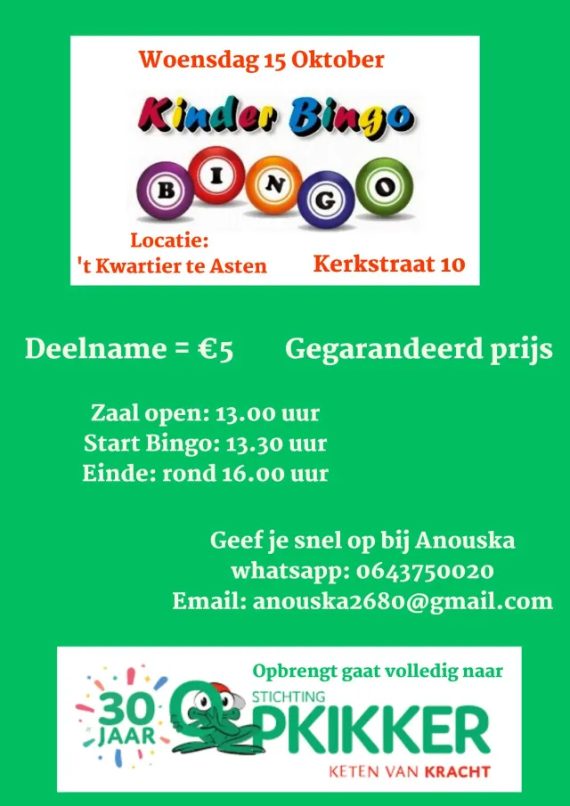 Join the craft workshop. Go on an adventure with Melvin Kunst or travel through space with André the astronaut. There is also children's yoga, children's bingo and you can visit the children's theatre. Check the calendar below to see what you can do and when. You find 't Kwartier in Kerkstraat 10.