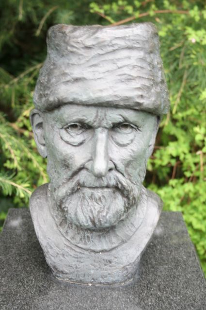 Een bronzen beeld van het hoofd van Jan Vriends, gemaakt door kunstenaar Geert Kunen (uit Belfeld...