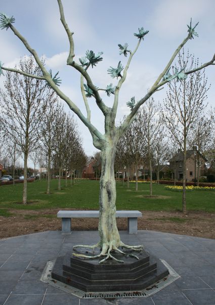 Het werk stelt een levensboom voor in de vorm van handen van de Ommelse kinderen van basisschool...