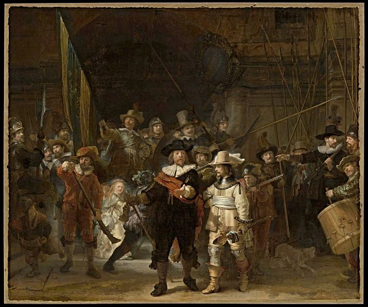 In 1642 schilderde Rembrandt zijn bekendste, mooiste en grootste schilderij: "De Nachtwacht”. Dit schilderij komt in zijn betoog dan ook uitgebreid ter sprake.