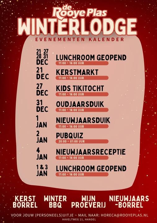 Op 31 december is er een oudjaarsduik bij Rooije Plas in Handel.