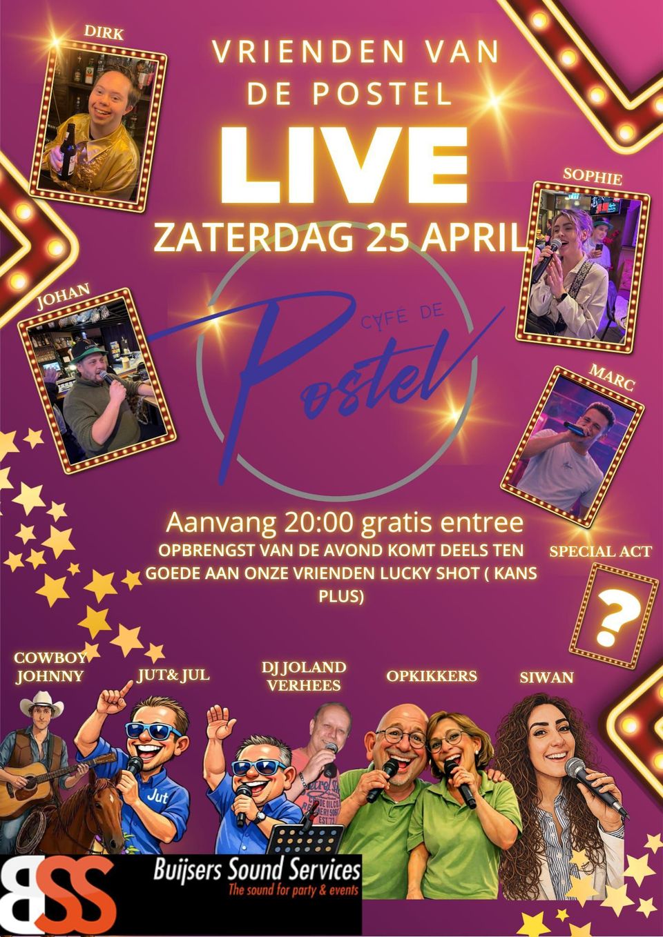 Op 25 april vindt de feestavond “Vrienden van de Postel Live” plaats! Een gezellige en sfeervolle avond georganiseerd om geld in te zamelen voor dart team Lucky Shot (Kans Plus).