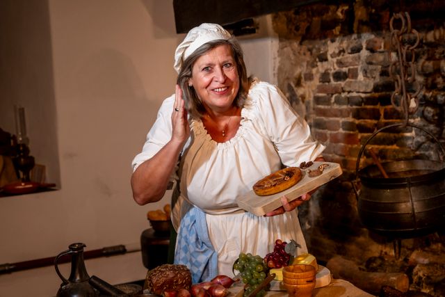 De kokkinnen en de kok maken superlekkere gerechten. In de kelder, waar de kasteelkeuken is, kun je de koks helpen. Help je ook mee met de boterkoek versieren?