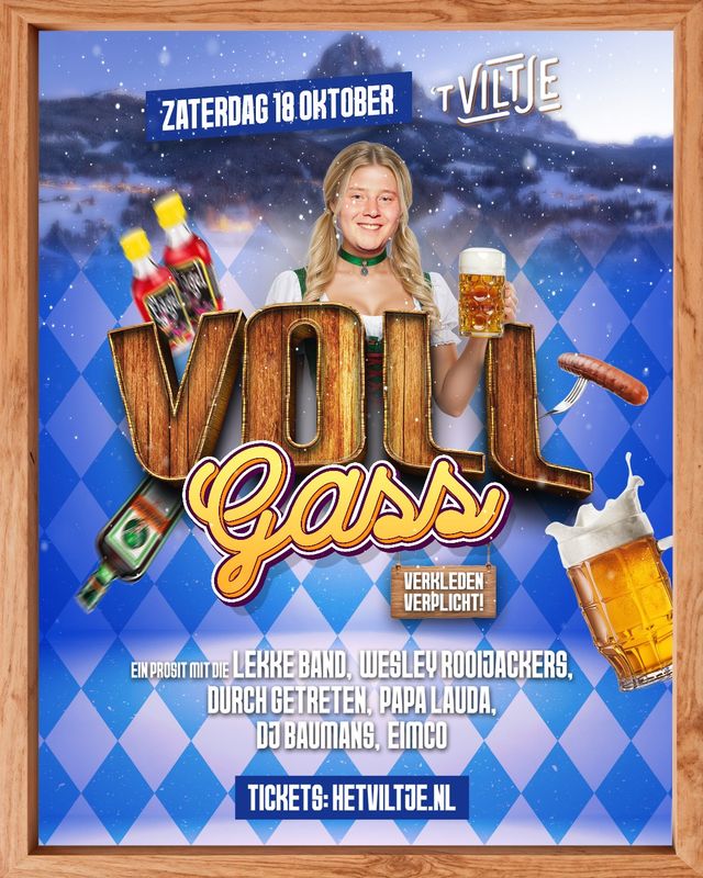 Op 18 oktober Oktoberfest onder de thema titel Voll Gass bij cafe 't Viltje te Bakel met o.a. Lekke Band, Papa Lauda, Wesley Rooijackers.