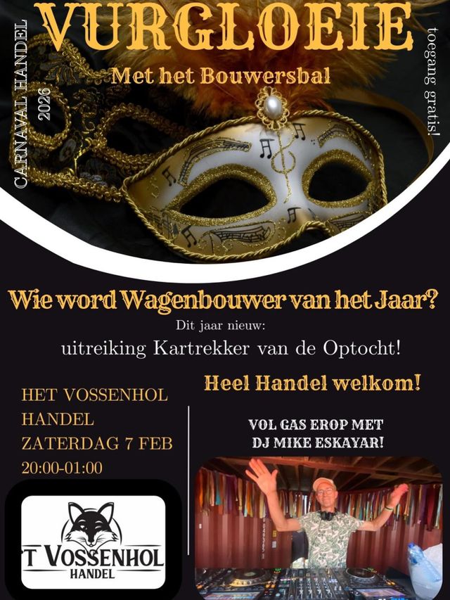 Op 7 februari is er een Vurgloeie bouwersbal bij cafe t Vossenhol te Handel.