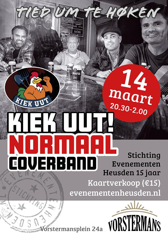 Een avond die in het teken zal staan van herkenning. Vanaf 20:30 tot 2:00 uur is het “Tied um te Høken”met de Normaal coverband “KIEK UUT!” in café Vorstermans, Vorstermansplein 24a, 5725 AM Asten-Heusden.