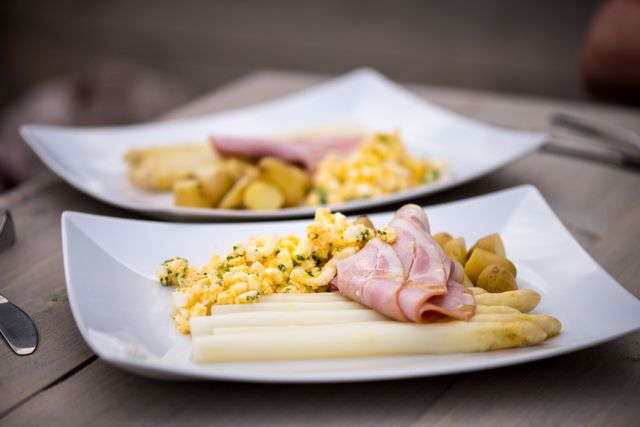 Het hoofdgerecht bestaat uit de klassieke asperges met uiteraard de beste ham, ei en gewelde boter.