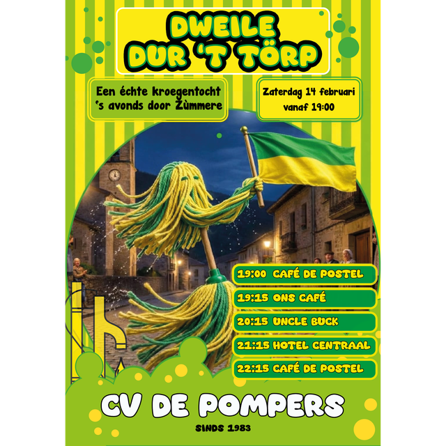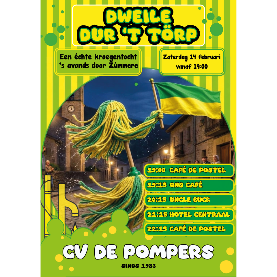 Nadat zaterdagmiddag (14 februari) onze Hoogheden opgehaald zijn en carnaval bij de Pomp is geopend gaan wij 's avonds gezellig door Someren-Dorp op kroegentocht! Loop gerust mee!