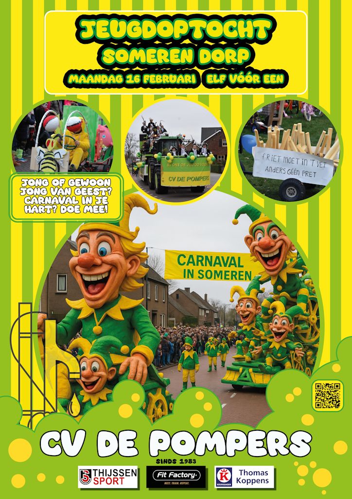 Carnavalsmaandagmiddag (16 februari) trekt er voor het eerst sinds lange tijd een echte Optocht door het Dorp! Kom gezellig kijken naar de mooiste creaties, schminck en bouwsels. De optocht start om Elf minuten vóór Een.