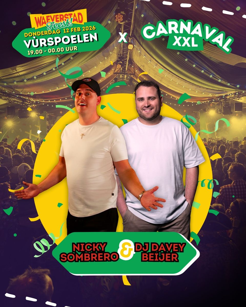 Carnaval XXL 2026 "Waeverstad Feest!" Op donderdag 12 februari 2026 gaan we vúrspoelen met Carnaval XXL!