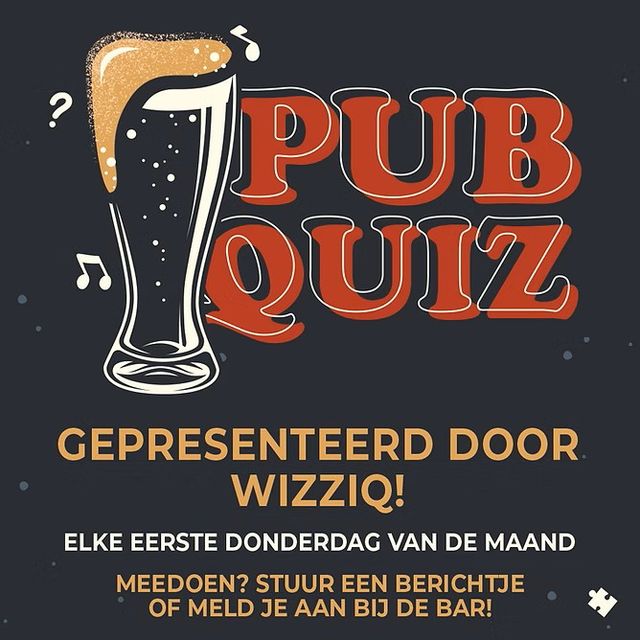 Elke eerste donderdag van de maand een interactieve pubquiz gepresenteerd door Wizziq!