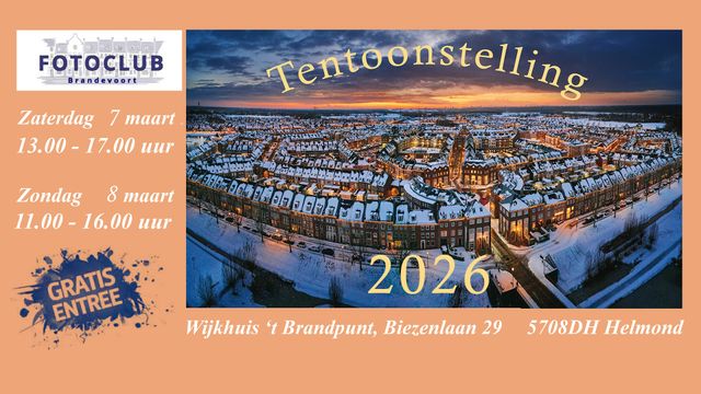 Op zaterdag 7 maart van 13:00 tot 17:00 uur en op zondag 8 maart van 11:00 tot 16:00 uur presenteren de fotografen van Fotoclub Brandevoort weer hun mooiste foto's tijdens de jaarlijkse tentoonstelling. Toegang gratis.