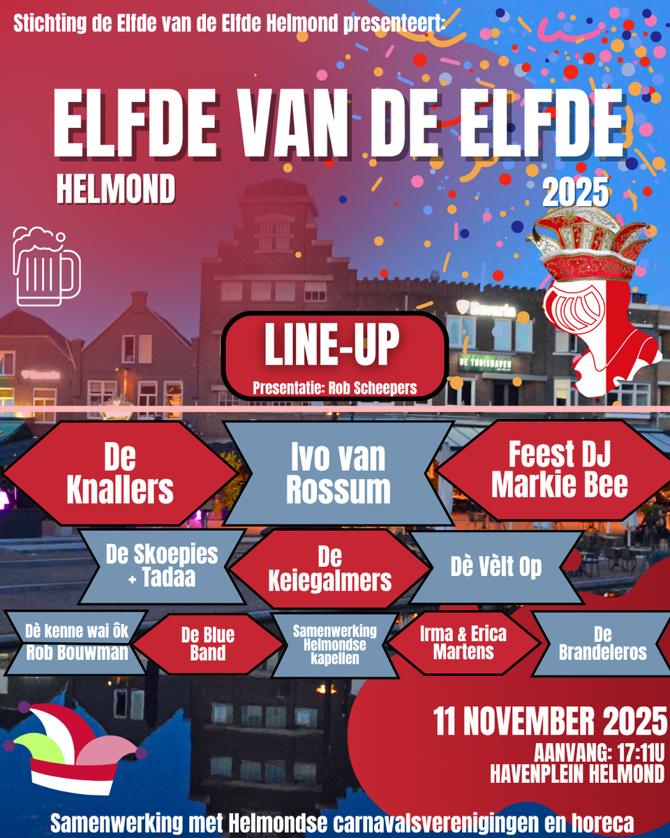 Voor meer informatie en updates, bekijk onze sociale media: alles onder De Elfde van de Elfde Helmond.