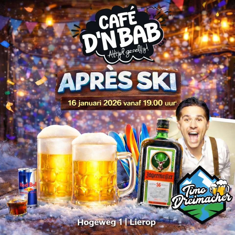 Op 16 januari 2026 vanaf 19.00 uur halen we de aprĂšs-ski sfeer weer naar CafĂ© Dân Bab.