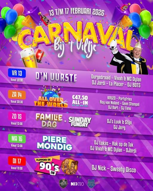 Van 13 tot en met 17 februari een schitterend carnavalsprogramma bij cafe zaal t Viltje te Bakel.