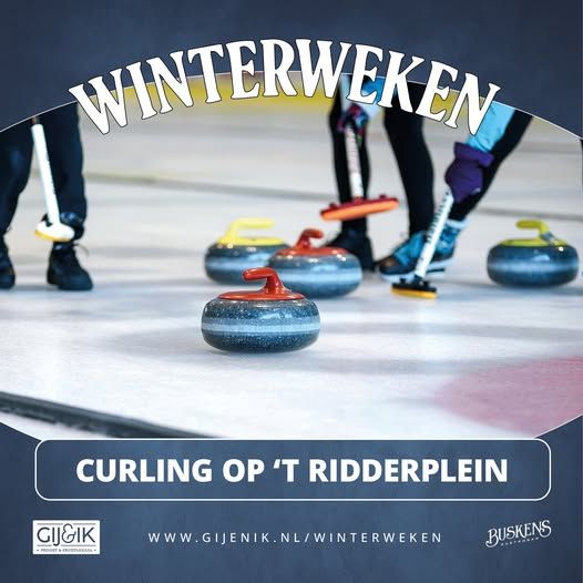 Van 5 december t/m 5 januari: Curling op 't Ridderplein! Altijd al eens willen curlen? Grijp je kans! Al vanaf €15 per uur huur je de baan inclusief benodigdheden. Reserveren doe je via onze website.