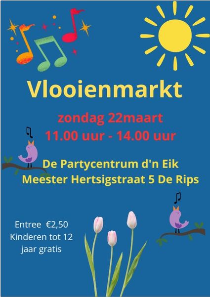 Op 22 maart organiseert Zanggroep Spired uit de Rips een vlooienmarkt in partycentrum d'n Eik te...
