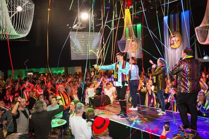 Een carnavaleske avond met muziek, spelletjes en een moppentrommel.