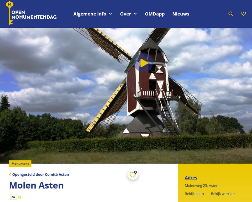 Kijk op www.openmonumentendag.nl voor de monumenten in gemeente Asten.