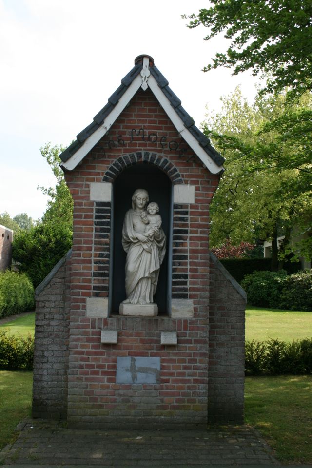 Wegkapelletje met stenen Mariabeeld wat gebouwd is in opdracht van Pastoor Vogels rond 1940. Het is gemaakt naar een voorbeeld van een Vlaams beeld uit de 17e eeuw. Hij noemde het beeldje 'Ons Moeder'. In de volksmond werd gezegd dat het beeldje op zijn moeder leek.