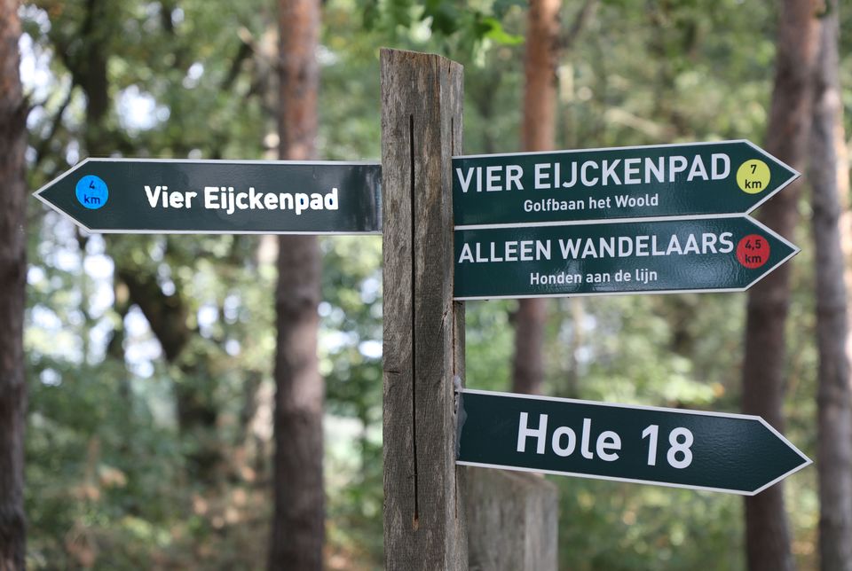 De wandelpaden lopen voor een gedeelte over de gronden van de Golfbaan, maar zijn zo gesitueerd dat wandelaars niet op de golfbaan komen, waarbij de veiligheid voorop staat. De wandelingen beginnen en eindigen altijd bij het clubhuis van Golfbaan het Woold. Parkeren is gratis, ook zijn er elektrische laadpalen aanwezig. Bij de receptie zijn gratis plattegronden van de wandelroutes te krijgen. Je kunt kiezen uit drie routes van verschillende lengtes, die zijn aangegeven met geel, rood en blauw gekleurde palen.